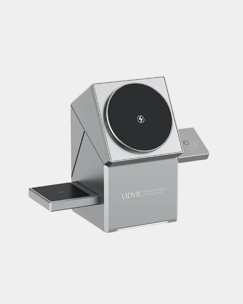 Estacion de carga 3 en 1 Vidvie WLC1416, perfecto para cargar tu iPhone, Apple Watch y AirPods al mismo tiempo. Diseño magnético, carga rápida de 15W y cuerpo compacto ideal para escritorio o mesa de noche.